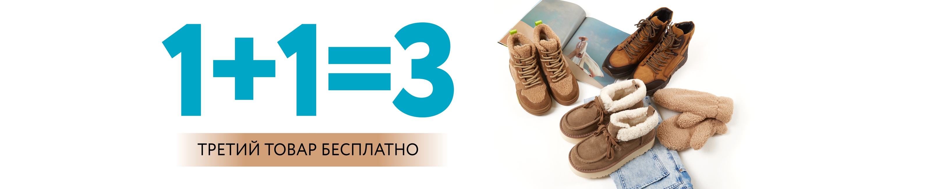 Любимая акция возвращается, и теперь в ряде магазинов три товара можно приобрести по цене двух, даже если это обувь со скидкой. Очень выгодно, смотри: купил два - получил три!