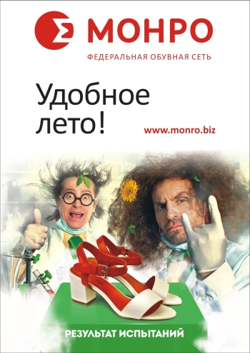 Сеть магазинов обуви «Монро» радует неизменно широким ассортиментом качественной мужской, женской и детской обуви. Во всех магазинах сети представлены полюбившиеся бренды: Banderos, Rita Bravuro, Bona Mente, Carido, Paseo, Ulet и «Солнечный Лёва».