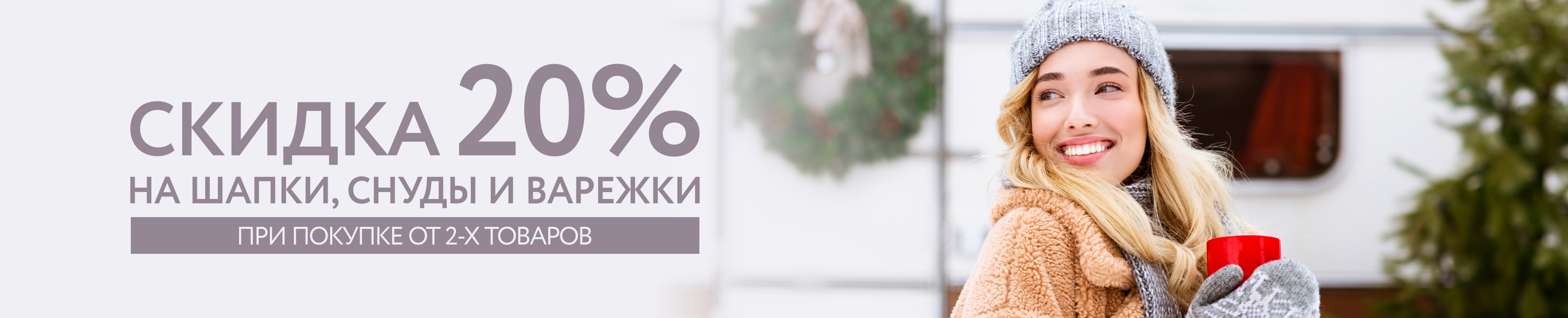 Условия акции: при покупке двух и более товаров из ассортимента аксессуаров: шапок, снудов, палантинов, шарфов, перчаток, варежек, рукавиц, предоставляется скидка 20% на все товары данных групп в чеке. Скидка не суммируется со скидкой по дисконтной карте. Товары по акции могут быть предоставлены в рассрочку.