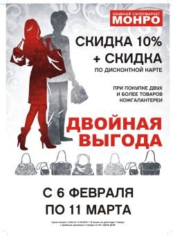 Компания Монро рада предложить своим покупателям новую акцию "Двойная выгода".