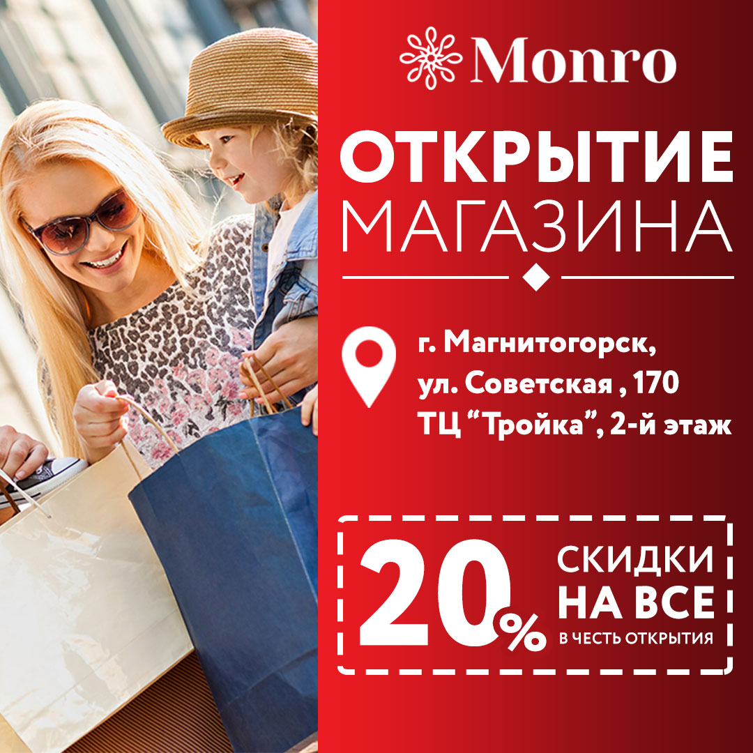17 июля в городе Магнитогорске состоялось официальное открытие нового магазина «МОНРО» по адресу ул. Советская, 17, ТЦ "Тройка", 2-й этаж.